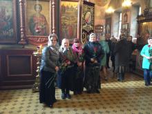 По окончании Литургии, по сложившийся традиции прихода, настоятель обратился с поздравлением ко всем женщинам и подарил цветы.