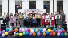 На праздник пригласили Александра и Елену Михайловых, которые исполнили свои песни в сопровождении двух гитар и скрипки, а также прочитали стихи.