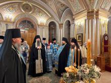 Его Высокопреосвященству сослужили: секретарь Подольского епархиального управления иерей Константин Семёнов, благочинный Чеховского церковного округа и монастырей Подольской епархии, игумен Вознесенской Давидовой пустыни Сергий (Куксов), казначей монастыря иеромонах Артемий (Подмосковный) и клирики Подольской епархии.
