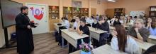 12 сентября в рамках просветительского проекта Подольской епархии «Диалог со священником» настоятель Преображенского храма деревни Спас-Темня м.о. Чехов иерей Николай Метенько провёл первую встречу в этом учебном году с учащимися 10 класса средней школы №1 города Чехова.