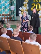 29 мая в средней общеобразовательной школе военного городка Чехов-2 прошёл тематический урок-встреча, посвящённый Дню славянской письменности и культуры. В мероприятии принял участие настоятель храма Сорока Севастийских мучеников города Чехов-2 протоиерей Роман Изосимов. Он рассказал ребятам об истории создания славянской азбуки и о просветительских трудах равноапостольных Кирилла и Мефодия. Дети внимательно слушали гостя и задавали ему подготовленные для встречи вопросы. Также отец Роман рассказал о негативном влиянии сквернословия на жизнь человека.