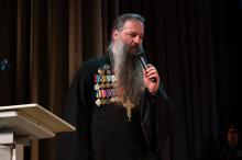 Гостями урока стали глава м.о. Чехов М.Н.Собакин, благочинный Чеховского церковного округа и монастырей Подольской епархии, игумен Вознесенской Давидовой пустыни Сергий (Куксов), участники специальной военной операции полковник Дмитрий Ефремов и младший сержант Ростислав Круглов, а также волонтёр, координатор инициативной группы «Помощь СВО-Чехов» Екатерина Мазур.