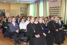 В зале собрались педагоги и ученики общеобразовательных школ, родители, священнослужители Чеховского благочиния, чтобы начать разговор по теме чтений, которая в этом году сформулирована так: «Молодёжь: свобода и ответственность». Со словами приветствий к собравшимся обратились начальник Управления образования Администрации г.о. Чехов Елена Николаевна Толмачёва и благочинный Чеховского церковного округа священник Константин Александров. «Эти чтения не случайно называются образовательными, - подчеркнул отец Константин, - они действительно дают каждому их участнику определённый багаж новых знаний, связанных с Православием. Тех знаний, которые помогут в будущем без страха сделать правильный выбор и достойно, с усердием, выполнять свои обязанности перед людьми».