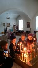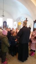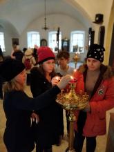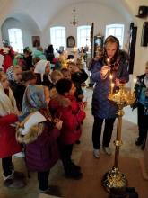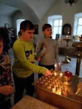 Затем в последующие дни ученики 1-5 классов посетили Троицкий храм. Настоятель рассказал детям об истории храма и о церковных Таинствах. После беседы дети ставили свечи и молились за своих близких.