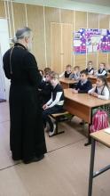 С учениками 1 и 3 классов было проведено занятие на тему Заповедей Божиих. Провел уроки настоятель Троицкого храма села Троицкое протоиерей Александр Алехнович.