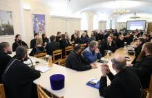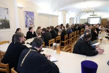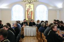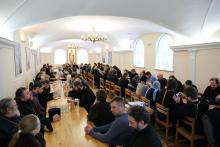 28 ноября 2018 года в Георгиевском храме города Видное состоялось собрание Миссионерского отдела Московской епархии. На нем присутствовали от Чеховского благочиния ответственный за миссионерскую работу, настоятель Троицкого храма села Троицкое протоиерей Александр Алехнович, а так же миссионеры-катехизаторы Зачатьевского храма города Чехов чтец Роман Шамсиев и чтец Стефан Синяков. На собрании были подведены итоги года, и состоялось обсуждение планов на следующий год, в частности, предложения по проведению акции «Пасхальная весть» и обсуждение тем миссионерского семинара. В конце встречи было сделано общее фото в Георгиевском храме.