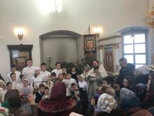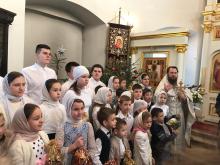 Воспитанники воскресной школы подготовили литературно-музыкальное поздравление для прихожан храма. Стихотворения русских классиков о Рождестве перемежались старинными колядками и праздничными песнопениями.