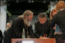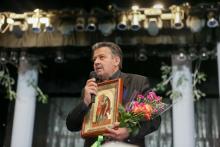 В конце встречи к гостю с благодарственным словом обратился благочинный Чеховского церковного округа священник Константин Александров и преподнёс ему в дар на молитвенную память икону Зачатья Пресвятой Богородицы.