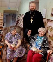 30 апреля 2019 года в Светлый вторник клирики Богородицерождественского храма с. Васькино городского округа Чехов протоиерей Александр Смолиевский и диакон Андрей Климушкин посетили социальное учреждение пансионат для престарелых «Оберег» в деревне Лешино, где тепло пообщались с жильцами и сотрудниками пансионата. В качестве подарка священнослужители преподнесли всем пасхальные куличи.