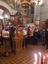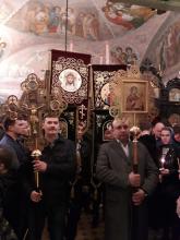 На полунощнице в алтарь была занесена Плащаница Господа Бога и Спаса нашего Иисуса Христа и состоялся крестный ход вокруг храма, в завершении которого перед закрытыми дверями храма началось Пасхальная Утреня.