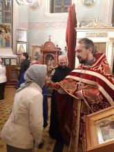 Богослужение завершилось пасхальным приветствием настоятеля с добрыми пожеланиями ко всем присутствующим и раздачей крашеных яиц.