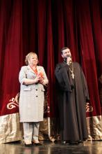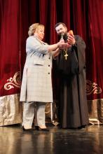 После представления зрителей приветствовали благочинный Чеховского церковного округа священник Константин Александров и Глава городского округа Чехов Марина Владимировна Кононова. Поздравляя Главу с праздником, отец Константин преподнес Марине Владимировне Пасхальное яйцо. По окончанию спектакля они поздравили победителей фотоконкурса «Дорога к храму» и вручили грамоты и памятные подарки.
