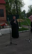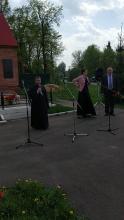 Совершил литии и поздравил всех присутствующих с Великой Победой ответственный за взаимодействие с Вооруженными силами и правоохранительными учреждениями в Чеховском благочинии, председатель Общественного совета при МВД России по городскому округу Чехов, настоятель Никольского храма деревни Кулаково иеромонах Феодосий (Поддубоцкий).