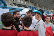По благословению Управляющего Московской епархией митрополита Крутицкого и Коломенского Ювеналия открыл Фестиваль Викарий Московской епархии епископ Зарайский Константин. На стадионе его встретили Первый заместитель Министра физической культуры и спорта Московской области А.А. Сазанович, Глава г.о. Жуковский Ю.В. Прохоров, председатель Епархиального отдела по делам молодежи, ответственный по вопросам физической культуры и спорта Московской епархии священник Константин Александров и благочинный Жуковского церковного округа протоиерей Николай Струков.