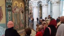 26 октября, прихожане Зачатьевского храма города Чехов и прихожане храма святого великомученика Георгия Победоносца города Чехов-3, а также ученики воскресных школ этих храмов вместе со своими родителями отправились на экскурсию в город Истра, в Воскресенский Ново-Иерусалимский мужской монастырь. Возглавил эту экскурсию настоятель Георгиевского храма города Чехов-3 священник Симеон Волощенко. Экскурсия началась с посещения Археологического Музея, где экскурсанты смогли увидеть остатки старинных печей, места, где раньше изготавливали, обжигали и окрашивали изразцы и отливали колокола. После этого экскурсанты отправились в главное достояние прекрасного монастыря – Собор Воскресения Христова. В ходе экскурсии паломники также узнали историю монастыря и немного о жизни Патриарха Никона. После увлекательной и познавательной экскурсии все отправились на вкусный монастырский обед. Перед тем как отправиться в обратный путь все помолились в главной святыне храма у Живоносного Гроба Господня.