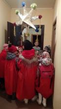В этот же день вечером ребята вместе с преподавателями воскресной школы Христославили на территории поселка Нерастанное, ходили от дома к дому с самодельной Рождественской звездой и несли людям радостную весть о рождении Христа, поздравляли всех с праздником Рождества Христова, пели Рождественские колядки, праздничные песни и рассказывали стихи. В этом году детей и взрослых, присоединившихся к шествию, стало больше. Также ребята из воскресной школы поздравили ветеранов, учителей-пенсионеров и пожилых прихожан и подарили каждому праздничные продуктовые наборы.