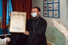 Так же в этот день иеромонах Феодосий в отделении ОГИБДД отдела ОМВД России по городскому округу Чехов от лица духовенства чеховского благочиния поздравил и вручил сотрудникам ОГБДД грамоты Чеховского благочиния.