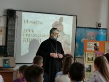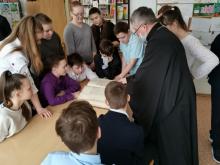 16 марта клирик Зачатьевского храма города Чехов священник Георгий Шадрин провел открытый урок по теме «День православной книги» для учащихся 6-го класса МБСОУ СОШ №3 города Чехов. Дети познакомились с историей книгопечатания на Руси, технологией изготвления первых книг. На выставке литературы был представлен образец старинной богослужебной книги «Псалтирь следованная», которую дети могли посмотреть и потрогать своими руками.