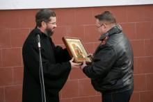 Обращаясь к собравшимся, священник Константин поздравил всех присутствующих с праздником и передал в дар Чеховского отделения вневедомственной охраны икону святых Иоакима и Анны, родителей Пресвятой Богородицы, как покровителей и молитвенников Лопасненской земли.