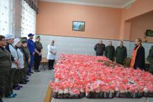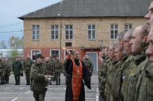 Священнослужитель обратился с поздравлением к личному составу части, солдатам и сотрудникам столовой, где освятил пасхальную снедь.