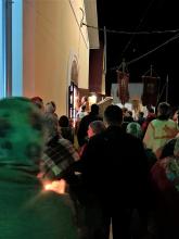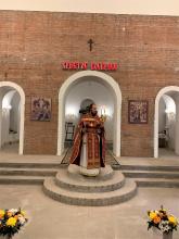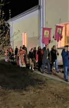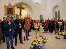 Перед праздничным богослужением в храм доставили Благодатный огнь, возжегши от него свечи, был совершен крестный ход.
