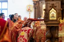 21 мая 2021 г. в Российском Православном Университете завершилась программа повышения квалификации «Пастырского служения в вузах г. Москвы и Московской области». В этот день, день памяти святого апостола Иоанна Богослова, в храме РПУ была совершена Божественная литургия, которую возглавил Управляющий делами Московской Патриархии, Первый викарий патриарха Московского и всея Руси митрополит Воскресенский Дионисий, в сослужении епископа Истринского Серафима, ректора РПУ игумена Петра (Еремеева) и духовенства.
