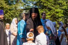 У входа в храм Владыку Аксия, по традиции с хлебом и солью, встретили учащиеся воскресной школы. Дети прочитали стихи и поздравили Владыку с престольным праздником.