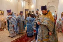 За Литургией Его Высокопреосвященству сослужили благочинный Чеховского церковного округа иерей Константин Александров, настоятель Тихвинского храма иерей Андрей Пугачев, заместитель благочинного иерей Дионисий Пугачев, настоятель храма Александра Невского в д. Мальцы протоирей Роман Изосимов и настоятель Богородицерождественского храма д. Васькино протоирей Александр Смолиевский.