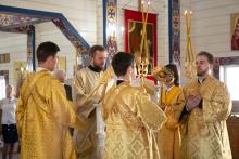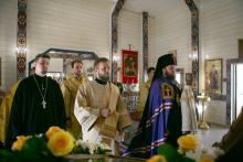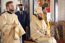 За Литургией Его Высокопреосвященству сослужили благочинный Чеховского церковного округа иерей Константин Александров и настоятель храма иерей Симеон Волощенко.