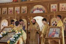 По окончании Литургии было совершено славление перед иконой апостолов Петра и Павла.