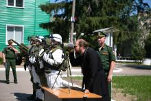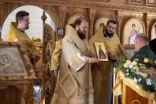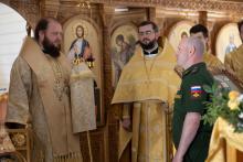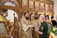 Архиепископ Аксий обратился к верующим с архипастырским словом и поздравил всех присутствующих с Днем образования воинской части, которой в этом году исполнилось 66 лет. Начальнику 9 Управления генерал-майору Паршину Сергею Михайловичу Владыка вручил Грамоту «в благословение за усердные труды на благо Церкви Христовой», а командиру части преподнес икону святого благоверного князя Даниила Московского, которого почитают покровителем Инженерных войск Вооруженных Сил России.