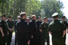 За богослужением молились начальник 9 Управления Министерства обороны Российской Федерации генерал-майор Паршин Сергей Михайлович, командир части полковник Олейник Андрей Николаевич, Глава городского округа Чехов Григорий Игоревич Артамонов, офицеры и военнослужащие воинской части и жители военного городка.