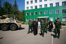 После Литургии для гостей состоялась экскурсия по территории части, во время которой была показана военная техника. Завершилось праздничное мероприятие открытием памятника Инженерным войскам и возложением цветов к мемориалу.