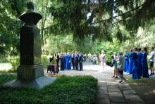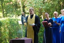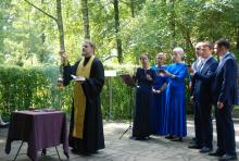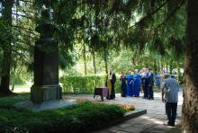 Перед началом благотворительной акции настоятель Тихвинского храма поселка Нерастанное городского округа Чехов иерей Андрей Пугачев совершил панихиду у памятника писателя.