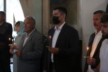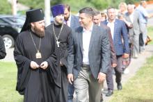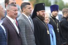 По окончании панихиды молящиеся проследовали к стеле «Населённый пункт воинской доблести», где приняли участие в торжественной части мероприятия и возложили цветы к мемориалу.