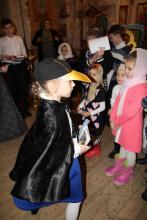 Открыл праздничную программу приветственным словом настоятель Тихвинского храма священник Андрей Пугачев, поздравив всех присутствующих со святками и рассказав о смысле праздника Рождества Христова и Крещения Господня, после чего ребята представили зрителю поучительную историю, о христианской милостыне, добре и помощи ближним. В представлении приняло участие 28 детей. По окончании представления были награждены победители и участники приходского детского конкурса рисунка, проходившего в Тихвинском храме в период с 20 ноября 2016г. по 6 января 2017г. В конкурсе приняли участие 9 детей, представившие свои работы в трех номинациях: