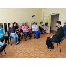 28 марта в дошкольном отделении МБОУ СОШ № 8 города Чехов состоялась встреча иерея Алексия Окнина, настоятеля Никольского храма г. Чехов в Ровках, с воспитателями и старшим воспитателем Ворначевой Натальей Владимировной. Во встрече также приняла участие староста Никольского храма Марина Георгиевна Денисенко.