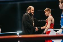 В ходе церемонии, Владыка Аксий наградил победителя финального выступления в весовой категории 46 кг.