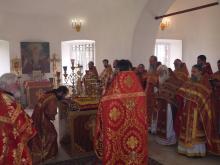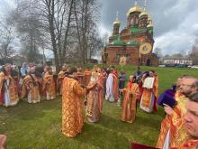 26 апреля, в Светлый вторник, благочинный Чеховского церковного округа иерей Константин Александров возглавил Божественную литургию во Всехсвятском храме села Ивановское городского округа Чехов. На богослужении молились священнослужители округа, настоятель храма иеромонах Самуил (Бурбенский), жители города и села и прихожане храма.
