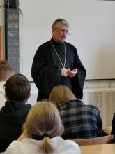 22 апреляв Лицее № 3 города Чехов состоялась встреча настоятеля Христорождественского храма села Мелихово городского округа Чехов иерея Георгия Шадрина с учениками седьмого класса. Беседа была по теме: «Воспитание милосердия и сострадания».