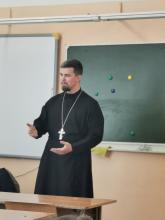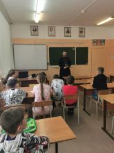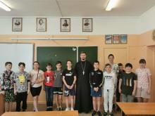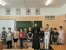 15 июня прошла встреча настоятеля Георгиевского храма города Чехов-3 иерея Симеона Волощенко с участниками Детского профильного лагеря для одаренных детей дневного пребывания "Калейдоскоп" на базе МБОУ СОШ Чехов-3.