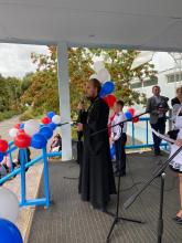 Благочинный Чеховского церковного округа иерей Константин Александров посетил праздничное мероприятие в р.п. Столбовая г.о. Чехов, где праздничная линейка состоялась у здания общеобразовательной школы, реконструкция которой завершилась к началу учебного года. Среди приглашенных гостей участие приняли: Глава г.о. Чехов Г.И. Артамонов, Председатель совета депутатов г.о. Чехов Г.С. Козина, Начальник управления образования Администрации г.о. Чехов И.А. Заболотнева, заместитель Главы г.о. Чехов Е.В. Градсков, первый заместитель министра энергетики Московской области О.Е. Роганова.