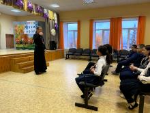 24 октября, по приглашению классного руководителя 5 «А» класса Маленькой Оксаны Геннадьевны, школу № 4 посетил настоятель храма святителя Луки Симферопольского иерей Дионисий Пугачев. Священнослужитель провел беседу о вере, ответил на вопросы учеников.