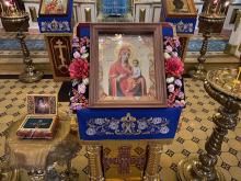 После богослужения было совершено славление перед иконой Божией Матери и ковчегом с частицей мощей святителя.
