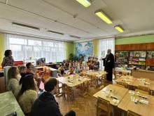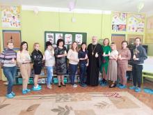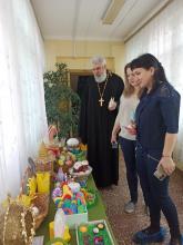 11 апреля в рамках сотрудничества Чеховского благочиния и Управления образования Администрации городского округа Чехов прошла встреча настоятеля Храма Преображения Господня деревни Чудиново иерея Дионисия Пономаренко с сотрудниками и воспитанниками Дошкольного отделения Гимназии № 7 города Чехов (бывший МБДОУ д/с № 51). В ходе посещения отец Дионисий посмотрел подготовленное воспитанниками представление и выставку поделок, посвященные Вербному воскресению и предстоящей Пасхе, затем провел занятие, где поговорил с детьми о предстоящем празднике Святой Пасхи. Совместно с родителями и воспитателями принял участие в мастер классе по оформлению пасхальных яиц. В завершении встречи пообщался с родителями и педагогами, где ответил на их вопросы, а так же достигли договоренности о дальнейшем сотрудничестве.