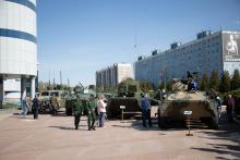 После мероприятия ученики смогли подкрепиться солдатской кашей и горячим чаем, приготовленными на территории «Олимпийского» в полевой кухне военнослужащими-умельцами и осмотреть выставку военной техники и оружия.