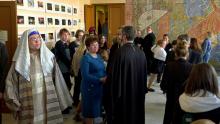 После представления, благочинный Чеховского церковного округа иерей Константин Александров и Начальник Управления развитием отраслей социальной сферы Администрации городского округа Чехов О.Н. Щукина поблагодарили настоятеля Иоанно-Предтеченского храма города Чехов протоиерея Георгия Захарова и весь театральный коллектив, который подарил всем собравшимся прекрасный пасхальный спектакль и радость пасхального общения.