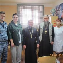 Проверку проводили члены Общественной наблюдательной комиссии по Московской области Председатель отдела по тюремному служению Подольской епархии иерей Валерий Гололобов, ответственный по взаимодействию с вооруженными силами Чеховского благочиния иеромонах Феодосий (Поддубоцкий), помощник уполномоченного по правам человека в Московской области в г.о. Серпухов И.В. Котова в присутствии заместителя начальника ФКУ СИЗО-3 УФСИН России по Московской области подполковника внутренней службы В.А. Щетинина.
