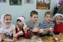 Настоящим подарком от взрослых стал мастер-класс по изготовлению жаворонков из теста, в котором с удовольствием приняли участие не только девочки, но и мальчики. Завершилась встреча чаепитием, за которым продолжилось общение юных прихожан с настоятелем храма.
