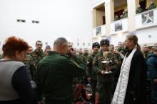 Священнослужитель обратился с поздравлением к личному составу части, солдатам. В столовой, под пение Рождественского тропаря, освятил готовящуюся пищу.